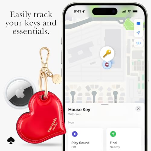- Package Includes: 1 unit of kate spade new york Heart-Shaped AirTag Charm Keychain – Classic Red