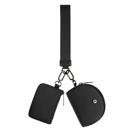 KeyChain Wallet Wristlet Wallets For Women Mini Zip Dual Pouch Wristlet (black+black)