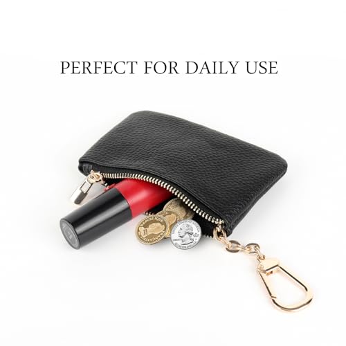 • 【PREMIUM MATERIAL & SECURE】- Our key pouch is carefully crafted from superior top-grain leather and comes with a high-polished gold purse keychain and hook. It feels luxurious and soft to the touch. The sturdy zipper closure, tested by hundreds of thousands of times, is very smooth and easy to pull, ensuring that your belongings are safe and secure.