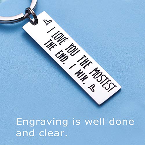 • Anniversary Gifts For Him Her Couple – Perfect for Valentine's Day or anytime you need to say 'i love you,' this stainless steel keychain reads “ I Love You The Mostest, The End I Win”.