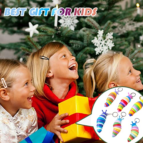 MEIEST 6 PCS Mini Fidget Slug Key-chain Toys,3D Articulated Stretch Caterpillar Sensory Stress Relief Flexible Hand Toy, Ideal Party Favor Colorful Office Desk Pet Toys(Random Color)