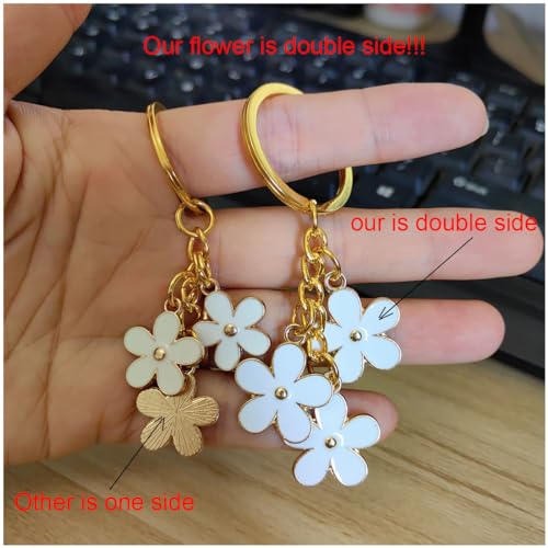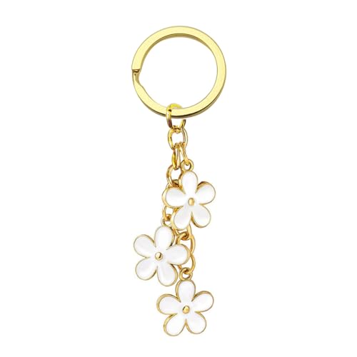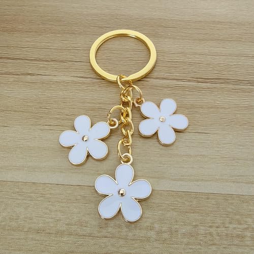 Meimimix Flowers Charms Enameled Keychain Chain Tassel Keyring For Women Girls Purse Bag Accessories Jewellery (White)