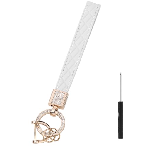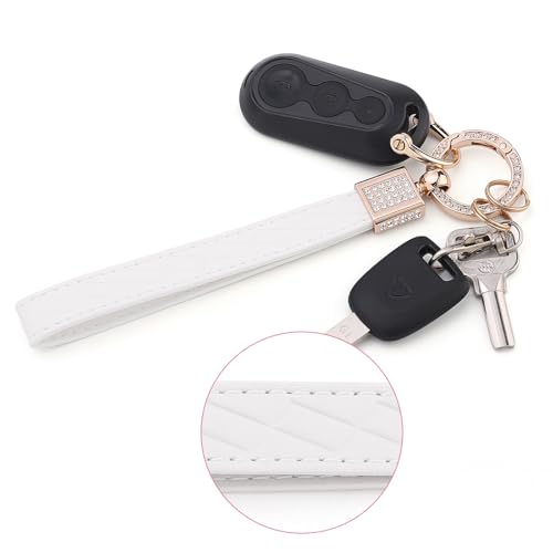 Narsikar Leather Wristlet Keychain for Women, Keychain Wristlet Car Key Chain with 2 Key Ring and Anti-Lost D Ring (White Gold)