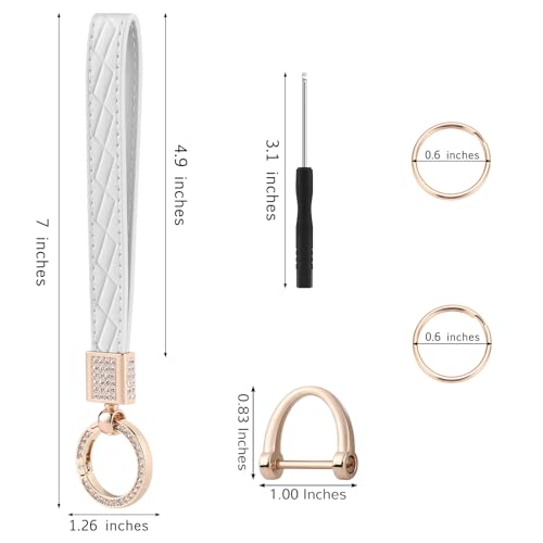• PACKAGE INCLUDES:The cute keychain bracelet comes with 1 x D-ring, 2 x key rings and a screwdriver, the D-ring car key ring holder comes with a screw cap, you can use the screwdriver to loosen or firm it up