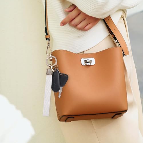 • PERFECT SIZE PROPORTION: The total length of the women key chain is about 4.9 inches and the width is about 0.62 inches, which is suitable to wear on your wrist. The outer diameter of the key ring is about 1.26 inches, can easily store all kinds of keys, small card wallets, trinkets and so on