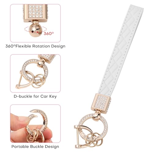• MATERIAL: The leather wristband keychain is made of microfibre leather and zinc alloy, inlaid with diamonds, looks delicate and beautiful