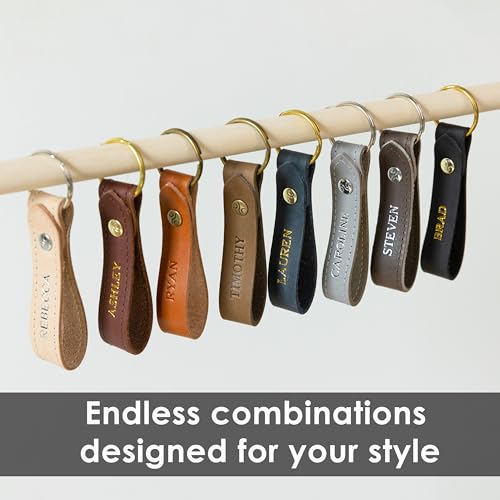 • ✅ Custom Monogram Options: Personalize your leather keychain with up to 10 characters including letters, numbers, or symbols, debossed to look like engraved. Choose a natural finish or metallic gold or silver foil for a monogrammed leather keychain that reflects your style.