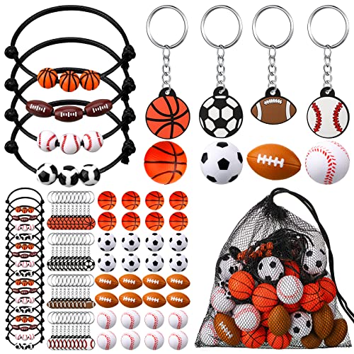 Nosiny 108 Pcs Sportball Party Favors Bulk 36 Pcs Sport Keychain Gifts 36 Pcs Sportball Stress Balls 36 Pcs Charm Bracelets for Team Birthday Party Supplies