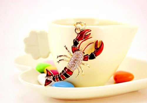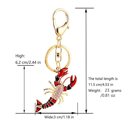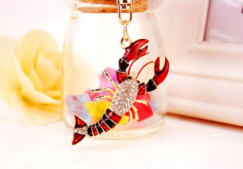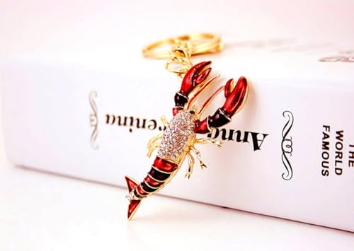 One Pack Cute Colorful Sea Life Lobster Summer Rhinestone Car Keychain Key Ring Keychain Key Ring Gift Pack Buckle Holder for Girlfriend Boyfriend Women Men Friends Lovers Colleagues