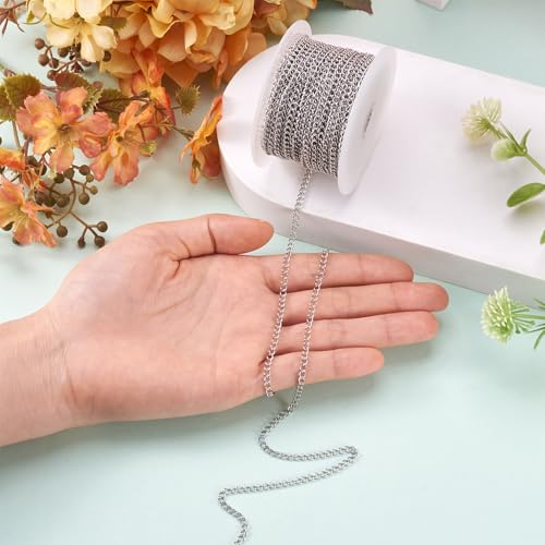 - Feature: soldered 304 stainless steel curb chains, stainless steel color.