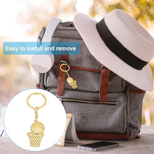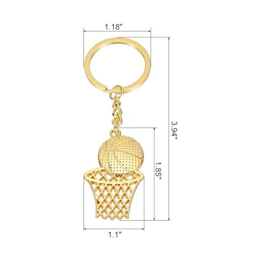 PATIKIL Basketball Hoop Keychain, Mini Cute Sports Basketball Key Chain Sport Ball Pendant Key Ring Bag Backpack Decor for Men Women Party Gifts Favors, Gold