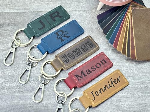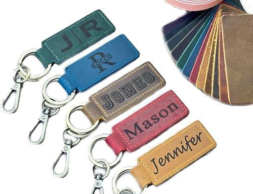 - Handmade Leather Craftsmanship: Genuine full grain leather with durable hardware; rustic and stylish personalized keychain that can be engraved with initials or names; perfect everyday accessory with lasting quality