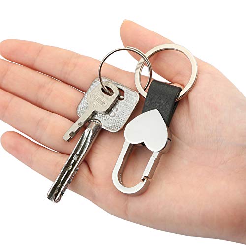 PESOENTH Men Leather Keyring Heart Car Key Chain Ring Bag Charms Black Leather Car Smart Keychain Women Cute Clip on Belt Loops Pants Buckle for Women