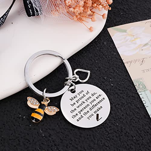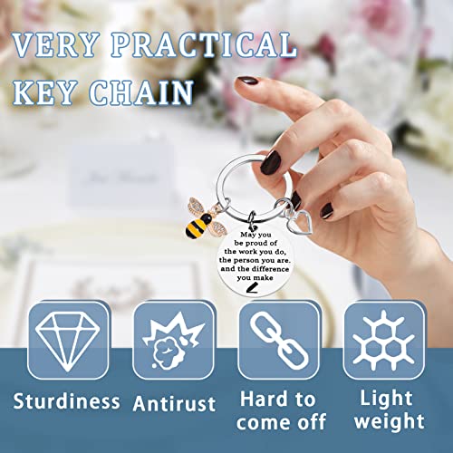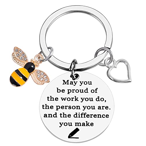 - Bee Charm Keychain:This cute keychain lettering with the words“May you be proud of the work you do the person you are and the difference you make”can be a great appreciated gift for teacher or special you want to say thank you,new teacher gifts