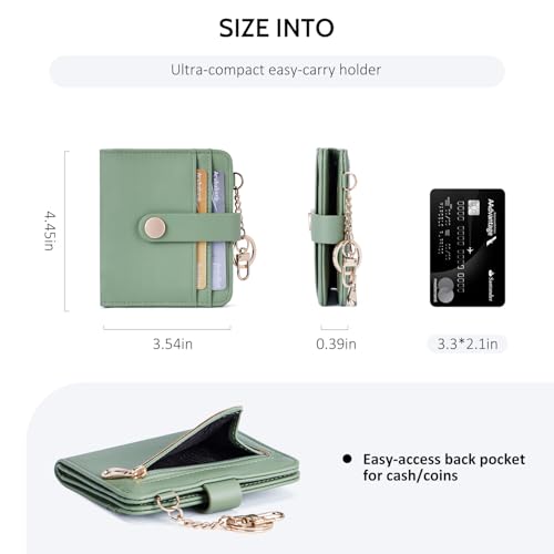 - Ultra-thin Design Keychain Wallet: Small credit card holder for women size is 3.54''L x 0.39" W x 4.45" H (inches).Slim,lightweight and compact enough to fit in your pocket, handbag or backpack.What's more,this compact wallets for women has a gold keychain to manage your keys,even hang in your bag.It is a slim card holder wallet convenient to take it everywhere,travel,casual daily use etc