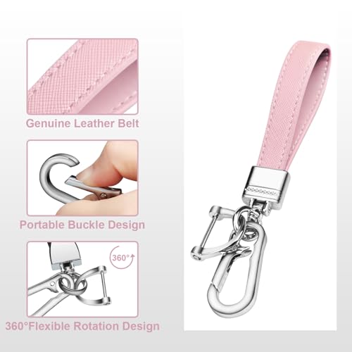 - 【Premium Material】This keychain 4.72 inch length 0.6 inch width.Made with genuine leather and polished chrome plating zinc alloy for a comfortable, high-end feel.Metal part adopts high strength alloy, soft handle,durable,smooth,scratch-proof and rust-proof.