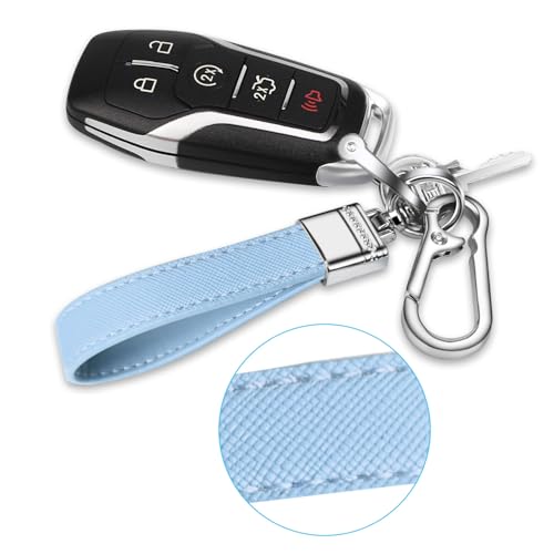 - 【Premium Material】This keychain 4.72 inch length 0.6 inch width.Made with genuine leather and polished chrome plating zinc alloy for a comfortable, high-end feel.Metal part adopts high strength alloy, soft handle,durable,smooth,scratch-proof and rust-proof.