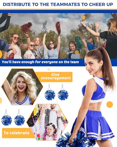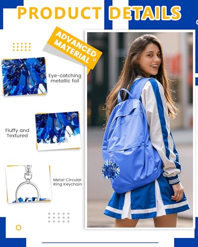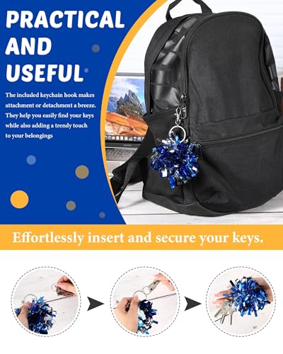 - Sturdy Material and Vibrant Colors: these pom pom keychains are made of quality plastic and metal for durability, and feature nonfading, shimmering blue and silver foil; They catch the eye, boost cheerleading spirit, and show your strong support for the team