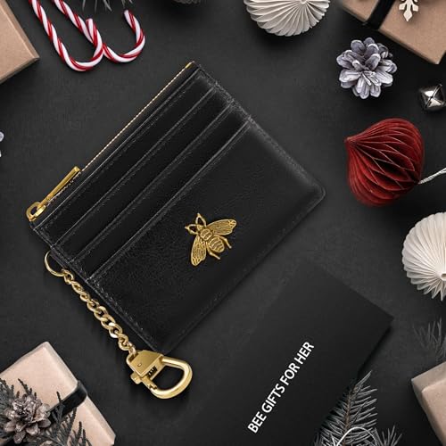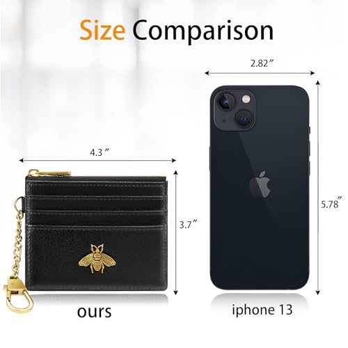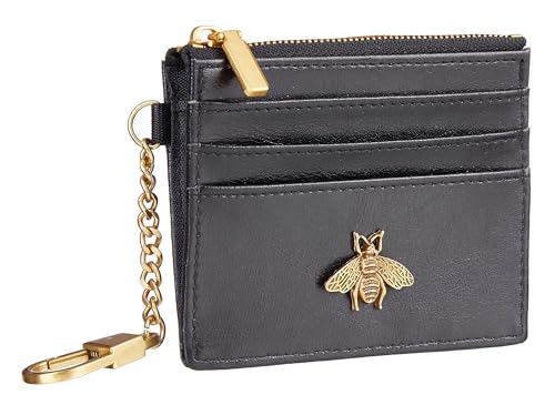 - 【Keychain Wallet & Metal Bee】Our credit card holder for women features 4 card slots, 1 ID window, and 1 zipper pocket for cash and coins. This card wallets for women comes with a gold keychain for easy carrying, and the distinctive, cute metal bee detail adds both practicality and style
