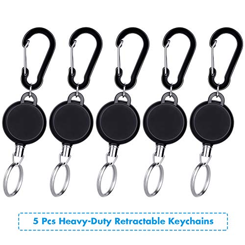 Selizo 5 Pcs Retractable Keychain Retractable Badge Holder Reel Clip ID Badge Holder with Steel Wire Rope, Black
