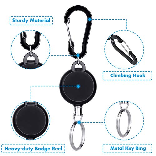 • DURABLE MATERIAL: The badge holder reel clip retractable is composed of climbing hook, metal keyring and plastic round reel case, sturdy and durable, weighted but not heavy feel, can serve for a long time