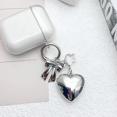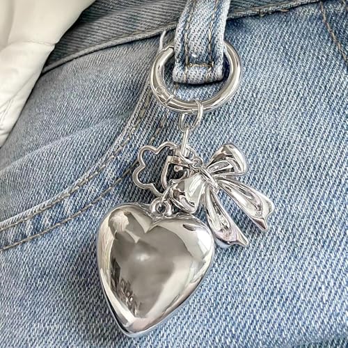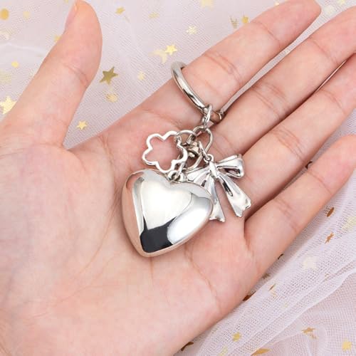 Silver Keychains Heart Bow Flower Keychain Accessories Kawaii Key Chains Women Cute Keychain Charms Floral Bowknot Heart Phone Charm Bag Charms for Handbags Key Chain Key Ring Pendant Purse Charm