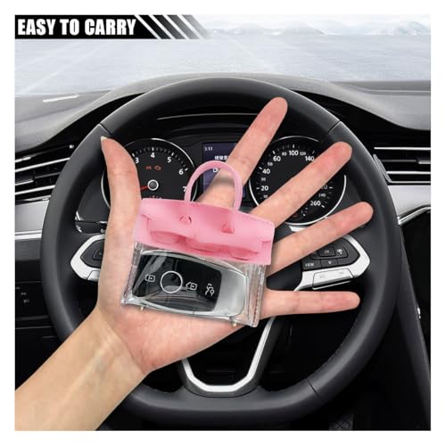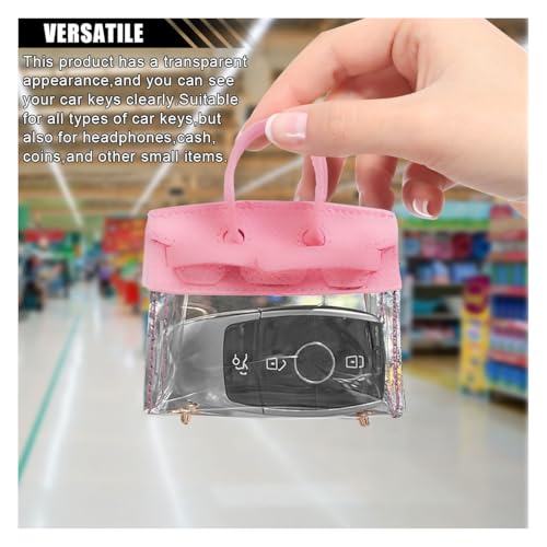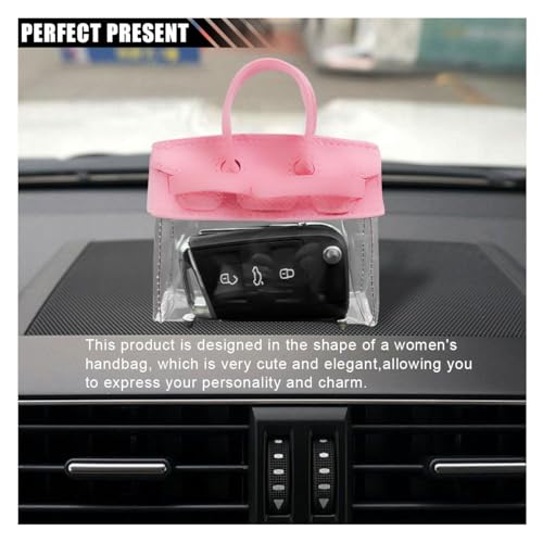 - 【Cute Design】:This car keychain has a creative handbag design and comes in a variety of cute colors that you can hold in your hand or hang on your backpack to bring freshness and highlight your unique taste. The transparent design and bottom metal bracket design also prevent the bottom of the key bag from fraying.