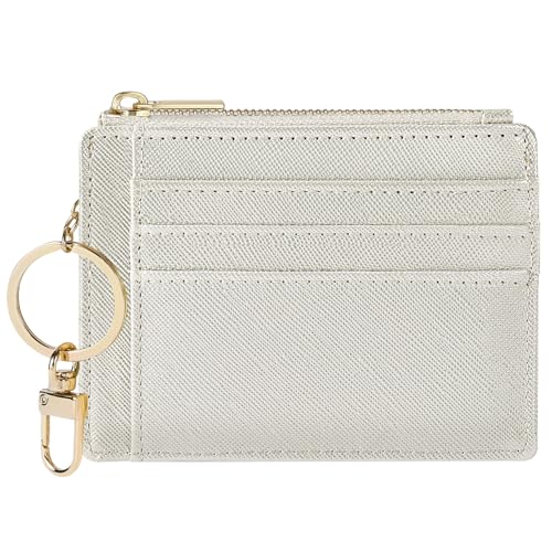Sodsay Card Case Slim Front Pocket Wallet for Women Credit Card Holder with Keychain(CH Silverish Gold)