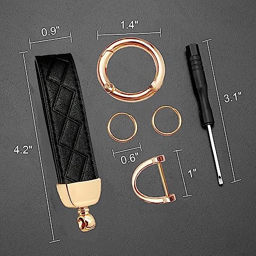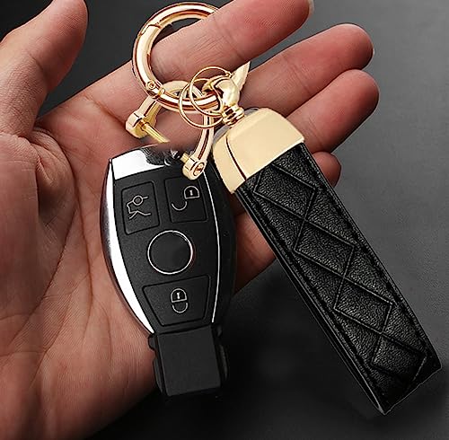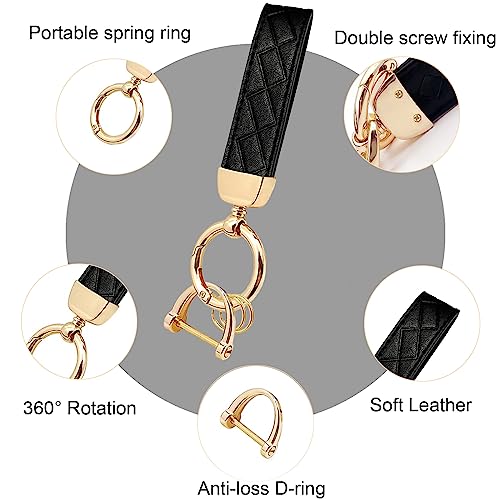 STACCTE Car Keys Keychain, Leather Key Chain, Universal Decorative Car Key Holder, Anti-lost D-ring, 360 Degree Rotatable Key Fob Keychain, Keychain for Men and Women(Black+Gold)