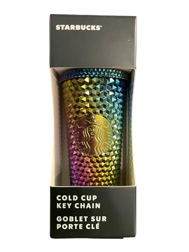 Starbucks 2023 Studded Oil Slick Rainbow Iridescent Mini Tumbler Keychain Ornament