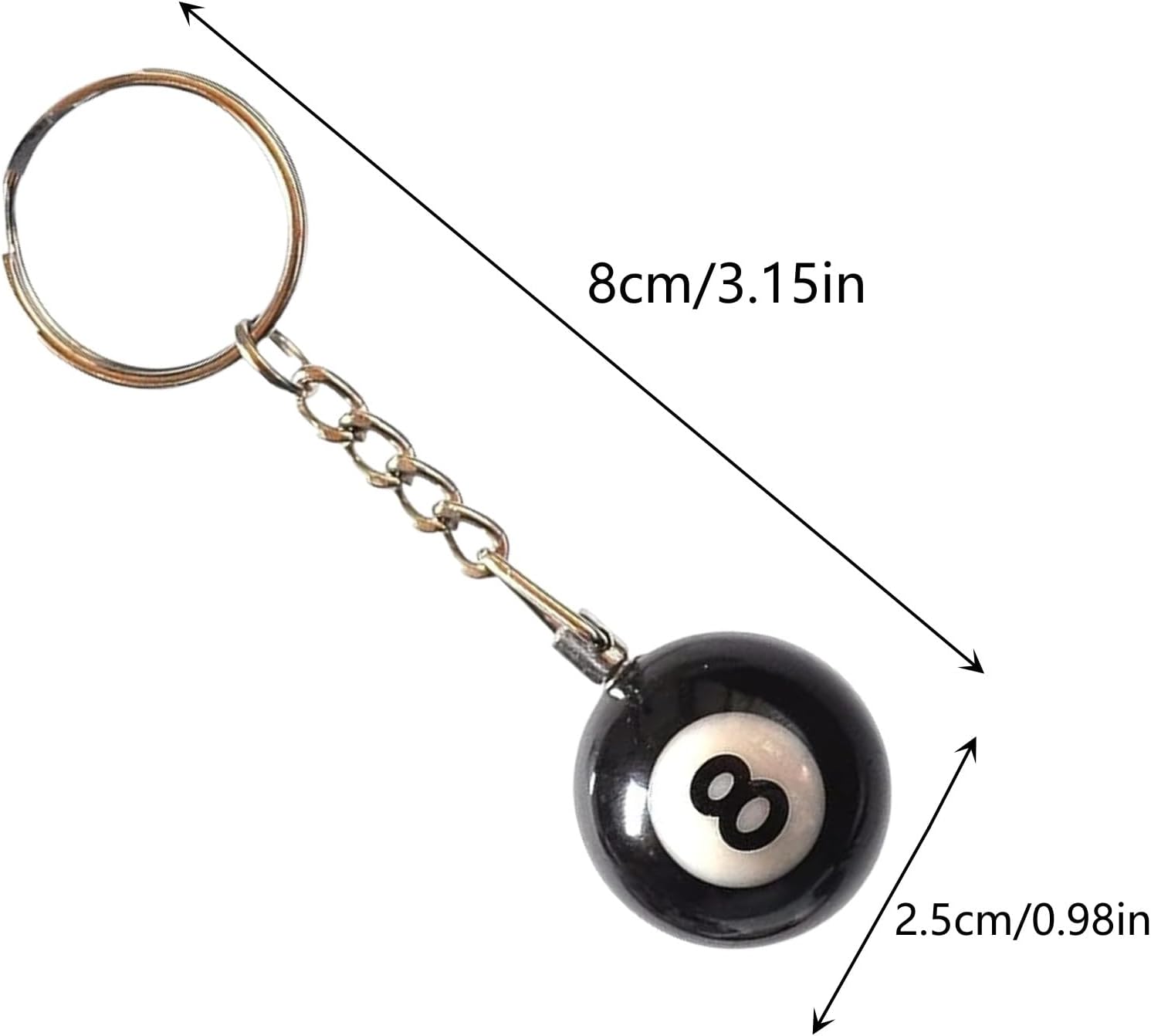 • Exquisite Design: Features a charming 8 ball shape, ideal for personalizing bags and keys