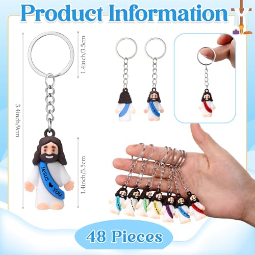 Sumind 48 Pcs Jesus Toys Figurine Christian Keychain Jesus Doll Religious Keychain…