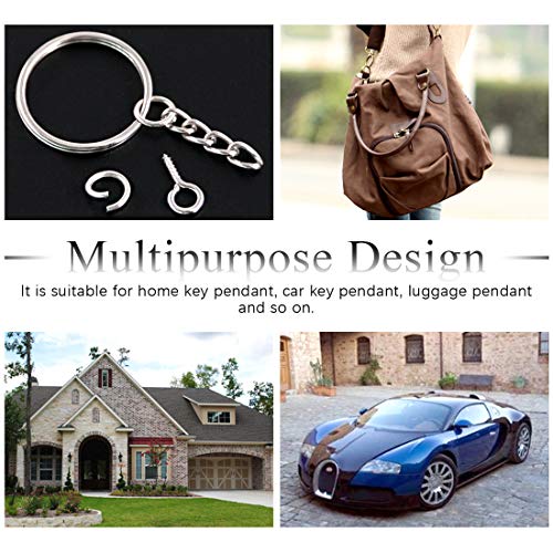 - ☛ 1, WHAT YOU GET — We have prepared 25mm Key rings for you, key rings with chain, you will get 150 pieces open jump rings and 150 pieces screw eye pins. Totally 450 pieces keychain findings that will meet your needs for craft projects.