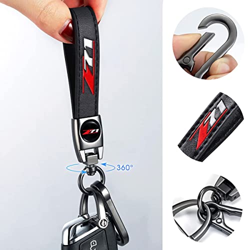 TACOMA Genuine Leather Car Key Chain for Chevy Z71 Silverado Colorado Keychain for Men and Women Family Present Key Ring Accessories Black