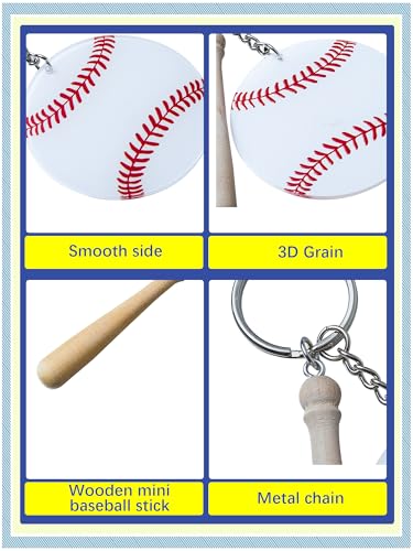 - Baseball Theme Design: these baseball favors are designed with lovely baseball patterns and mini bats, lovely and attractive, ideal for baseball fans, and these miniature baseballs apply unfinished design, so that you can DIY keychains according to your demands, you can use a marker to write some words on the charms, and paint the bats, just take full use of your handmade ability and imagination ability