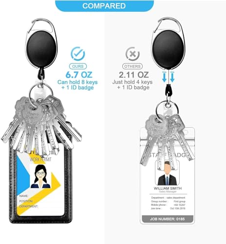 • Upgraded Heavy Duty Badge Reel: We added 3 snaps between the badge reel and the metal carabiner clip to make it stronger, effectively reducing the possibility of breaking. Our max loading weight is 6.7oz compared to 2oz of other items on the market