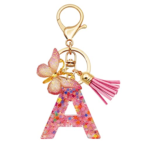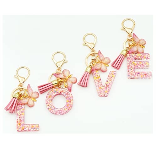 - Initial Letter Keychains: This resin letter keychain is made of high quality epoxy resin material,come with a resin butterfly and Tassel,It goes well with your backpack and is very personalized.