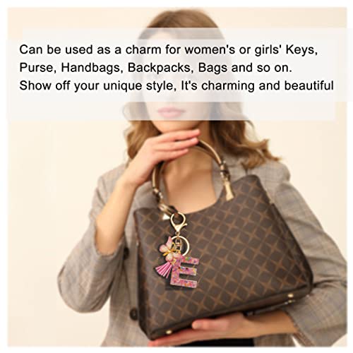 TTYY Initial Letter Keychain for Women Gift for Young Teenage Girl Gifts for Christmas to Mom Daughter Pink tassel (pink snow LetterA)