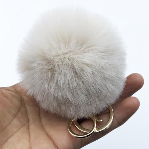 Unpafcxddyig Faux Rabbit Fur Ball Pom Pom Keychain for Car Key Ring Phone Handbag Charm Tote Pendant,apricot a