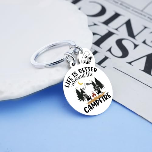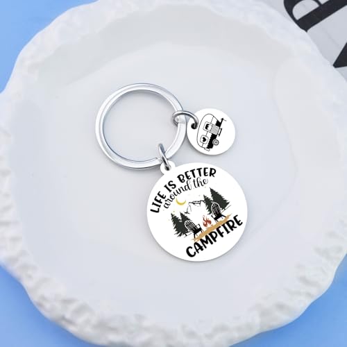 - Camper Accessories / Rv Accessories / Camping Accessories: Camping is not only an outdoor activity, but also a lifestyle. For those who like outdoor adventures, camping, and bonfire parties, this camping keychain engraved with “Life Is Better Around The Campfire” will always remind people of the free and warm camping ground.