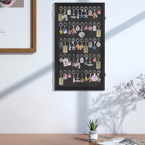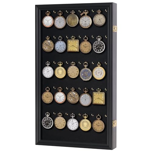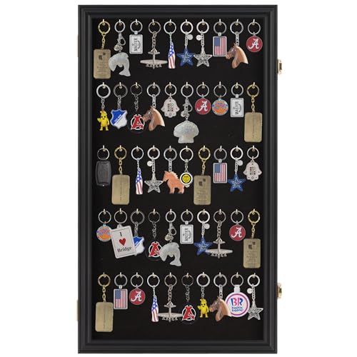 - Built-in hoock to hang keys. Keychains NOT INCLUDED. It comes with 50 tiny hooks to hang keychain or Fishing Lures Baits. You may also display Pocket Watches inside but you might not be able to use all 50 hooks because of the spacing required. You may display about 25 pocket watch total.