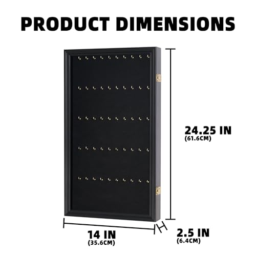 - Beautiful wall mount display case with metal brackets on the back, making it ready for haning. Measurements: 24.25"H X 14"W X 2.5"D.