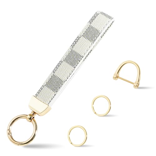 Weixiltc Leather Wristlet Keychain, Car Key Chain Holder with 2 Key Ring & Anti-Lost D Ring, Key Fob Wristband for Women (Z-Black Plaid)