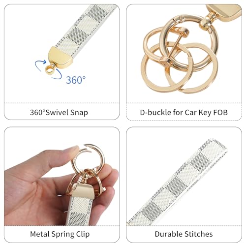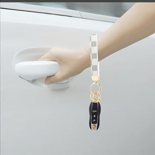 Weixiltc Leather Wristlet Keychain, Car Key Chain Holder with 2 Key Ring & Anti-Lost D Ring, Key Fob Wristband for Women (Z-Black Plaid)