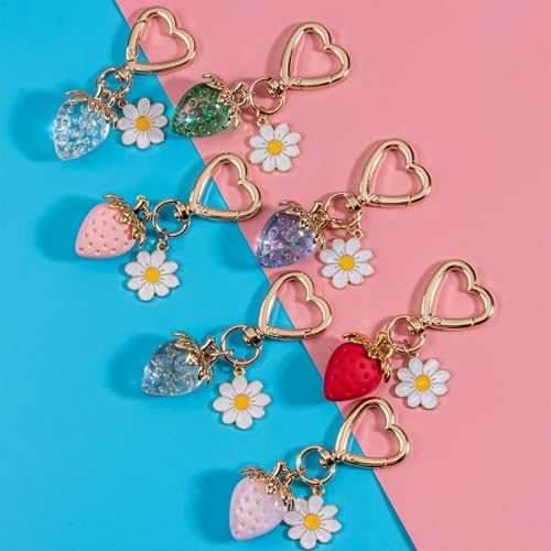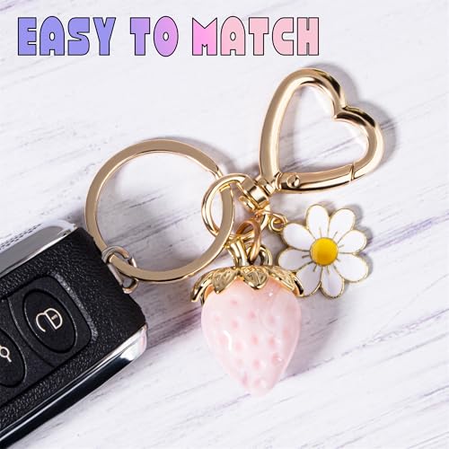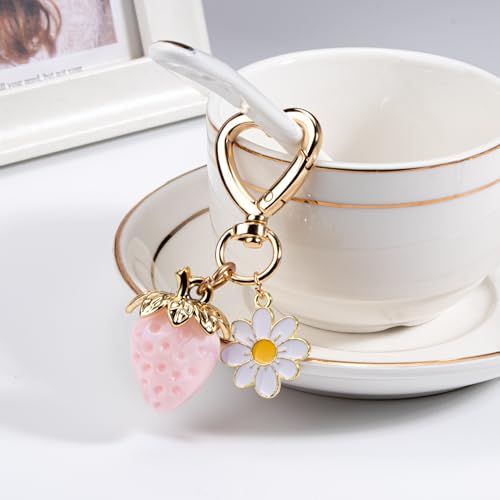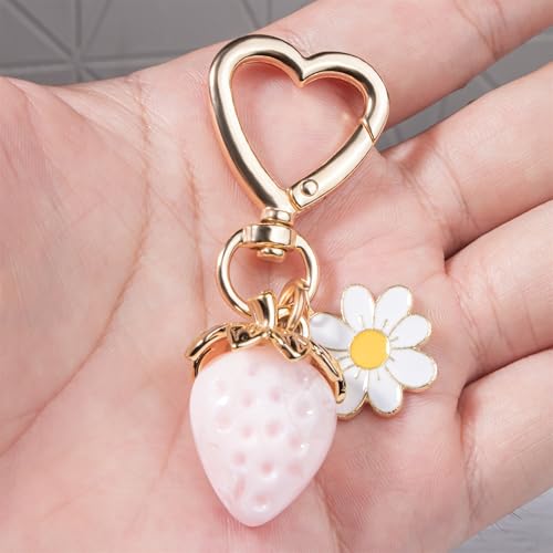 - Cute Strawberry Keychain: The beautiful strawberry-shaped charm with a heart-shaped keychain and daisy charm. Unique design, stylish and romantic. This strawberry keychain is the best decoration to embellish your life.