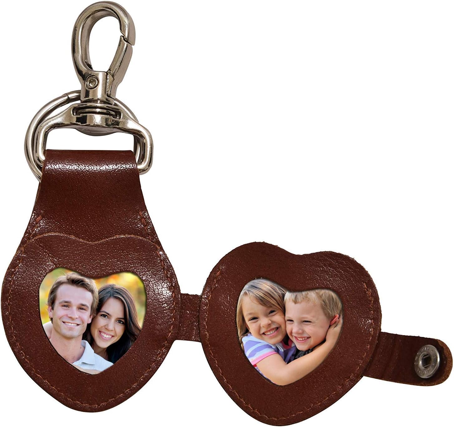 This adorable heart-shaped keychain is crafted from 100% top grain genuine leather, making it a stylish accessory for your clutch, purse, or handbag. Its unique design not only adds a touch of fashion but also features a convenient photo frame compartment, perfect for keeping your loved ones close.