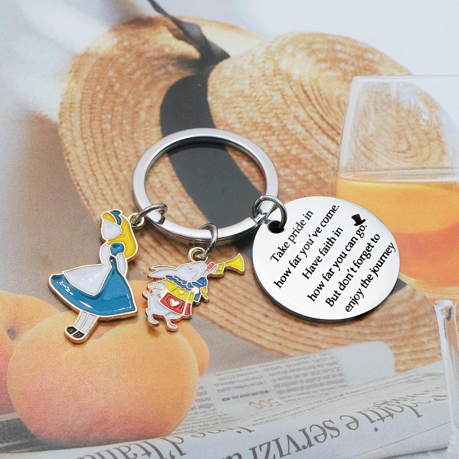 This charming keychain features a delightful Alice in Wonderland rabbit pendant, crafted from durable stainless steel. Perfect for celebrating friendships and special occasions, it serves as a meaningful keepsake that inspires and reminds your loved ones of their journey.