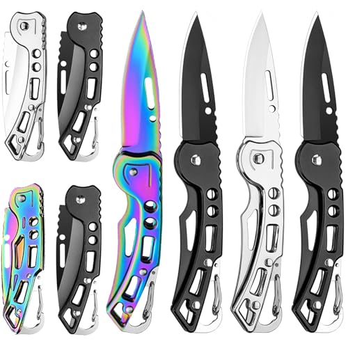• These keychain knives Include 4 pocket folding knives – 2 black, 1 silver, and 1 multicolored