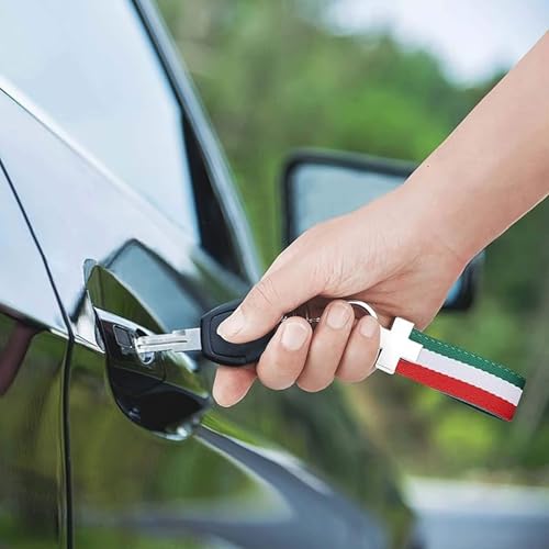 - Package include—1 piece of sliver chrome metal keychain, Italian flag three color stripe