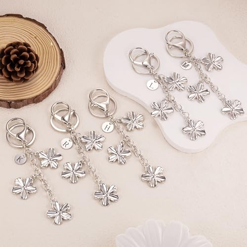XGALBLA Silver Initial Keychain Silver Flower Charms for Key Cute Letter Keyring…
